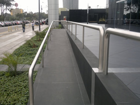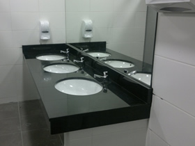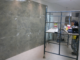 Revestimiento con tablero de granito en SS.HH. y oficinas Banco ICBC, BINSWANGER